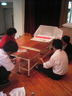 大道具を、みんなであーでないこーでないといじくりまわしています。